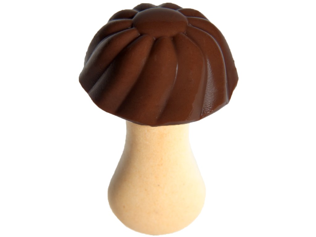 Sušenky ve tvaru hříbků s hlavičkou z čokolády. Baleno v papírové krabičce s okýnkem.