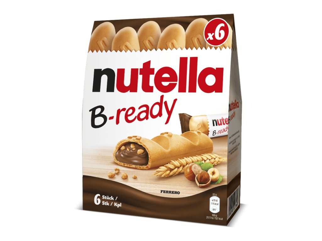 Lahodná křupavá oplatka plněná krémovou pomazánkou Nutella® a pšeničnými křupinkami. Nutella B-ready je nejpohodlnější způsob, jak si vychutnat jedinečné spojení chutí pomazánky Nutella® a křupavé oplatky.