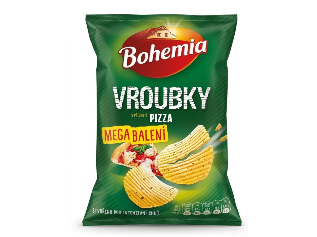 Bohemia Vroubky Pizza představují dokonalé spojení kvalitních českých brambor a bohaté chuti rajčat, bylinek a sýra. Díky specifickému vroubkovanému tvaru jsou tyto chipsy pevnější, více křupou a nabízejí intenzivnější chuťový zážitek než klasické hladké lupínky.