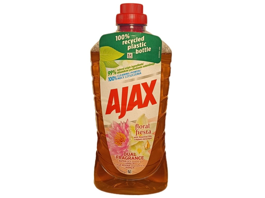 Provoňte svůj domov jarní svěžestí bříz a květin! Ajax Floral Fiesta Lilac Breeze kombinuje 100% čisticí sílu s uklidňující vůní šeříku obohacenou o esenciální oleje. Díky složení s 99 % složek přírodního původu účinně odstraňuje nečistoty z podlah i omyvatelných povrchů a zanechává za sebou přirozenou svěžest po dobu až 24 hodin.