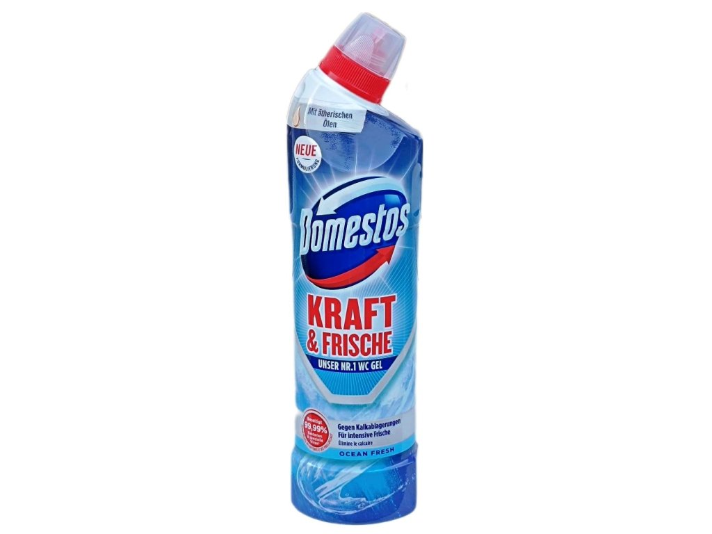 Domestos Ocean Fresh WC gel kombinuje maximální čisticí účinek s osvěžující vůní oceánu. Jeho husté složení dokonale přilne k povrchu toalety, efektivně odstraňuje mastnotu, vodní kámen i odolné nečistoty. Likviduje až 99,9 % bakterií, virů a plísní, čímž zajišťuje dokonalou hygienu a ochranu vašeho domova. Speciální receptura gelu působí i pod okrajem toaletní mísy a v těžko přístupných místech. Domestos Ocean Fresh WC gel zanechává dlouhotrvající svěžest a zajišťuje, že vaše toaleta bude zářivě čistá a hygienicky ošetřená.