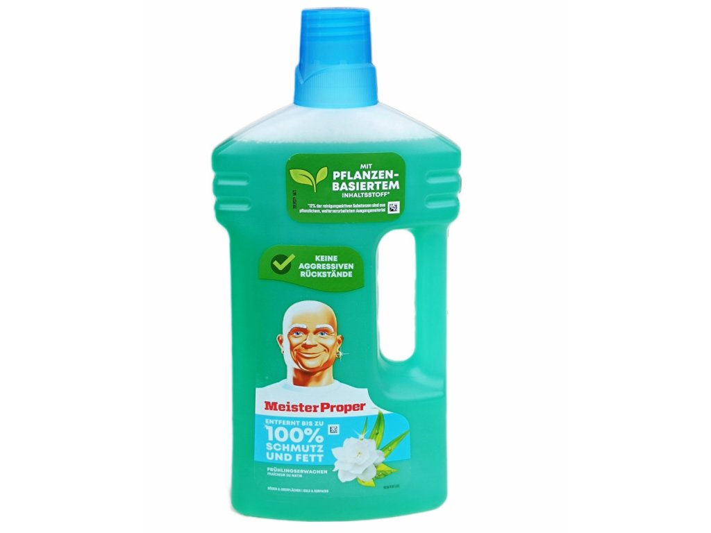 Meister Proper Frühlingserwachen je vysoce účinný univerzální čisticí prostředek, který si poradí s nečistotami v celé domácnosti. Díky svému složení snadno odstraňuje mastnotu, zaschlé skvrny a další nečistoty z různých povrchů, jako jsou podlahy, kuchyňské linky, koupelny a další. Zanechává povrchy hygienicky čisté a lesklé.